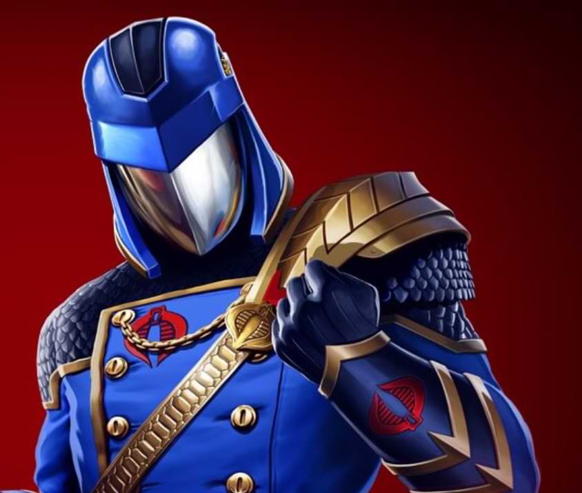 We’ve already got a G.I. Joe representative in the Snake-Eyes Fortnite skin, but what about the Joes’ arch-nemeses, Cobra, the paramilitary organization with the red snake logo? And who better to represent Cobra than the maniacal despot with the unmistakable voice, Cobra Commander?