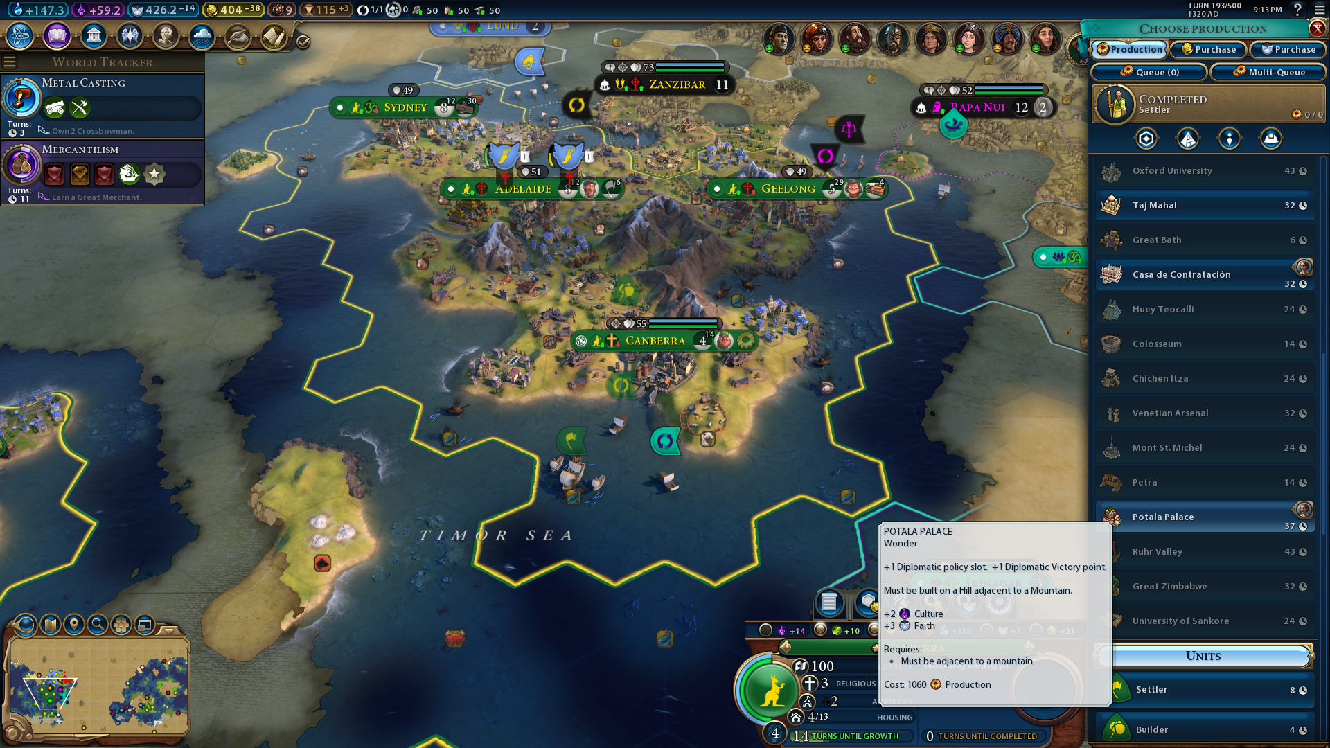 Building the Potala Palace is recommended mainly because of the diplomatic policy card slot it gives your civilization. Although economic cards are more important, the best diplomatic policies, such as Gunboat Diplomacy and Merchant Confederation, still have good effects. Thus, building a Potala Palace is worth it for all victory conditions.