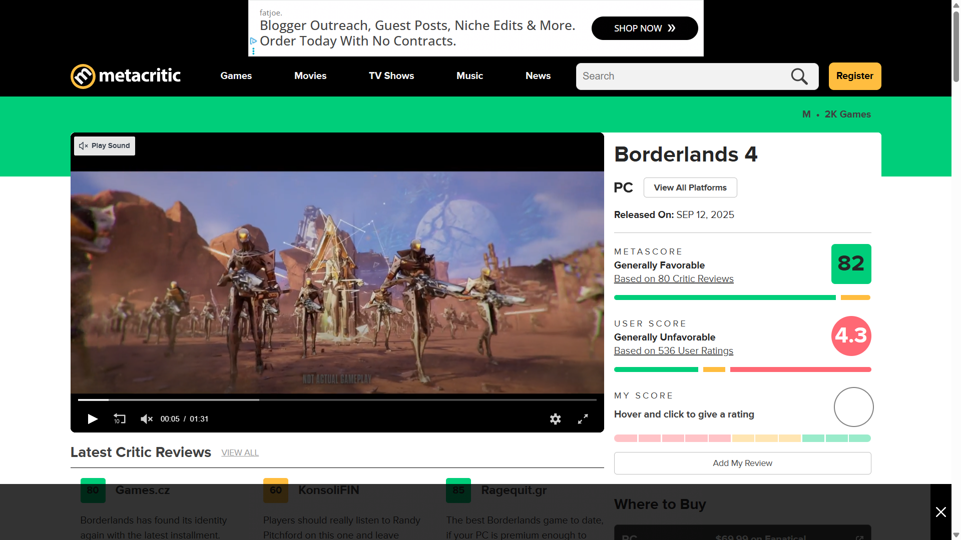 However, better crossplay alignment might not be the only reason behind the Borderlands 4 release delay for Switch 2. Although Borderlands 4 for Windows PC has generally been rated highly by the gaming media, player reviews for the game have been more negative. The Windows PC B4 game currently has an average metascore of 82 on Metacritic, but the average player rating of 4.3 for Borderlands 4 contrasts sharply with its media reviews.