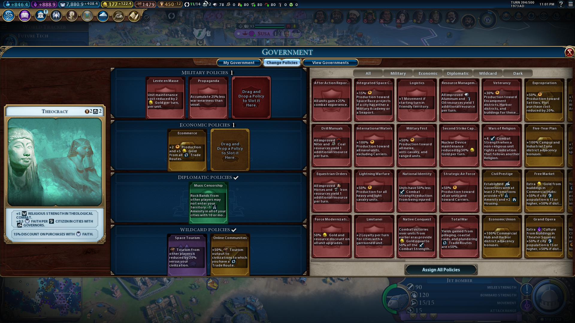 The third and fourth-tier Civ 6 government effects offer little for players pursuing a Religious Victory. Some players may prefer to stick with Theocracy throughout a game after selecting that government. However, sticking with Theocracy for a Religious Victory rather than upgrading to a higher-tier government will restrict your policy card slots.