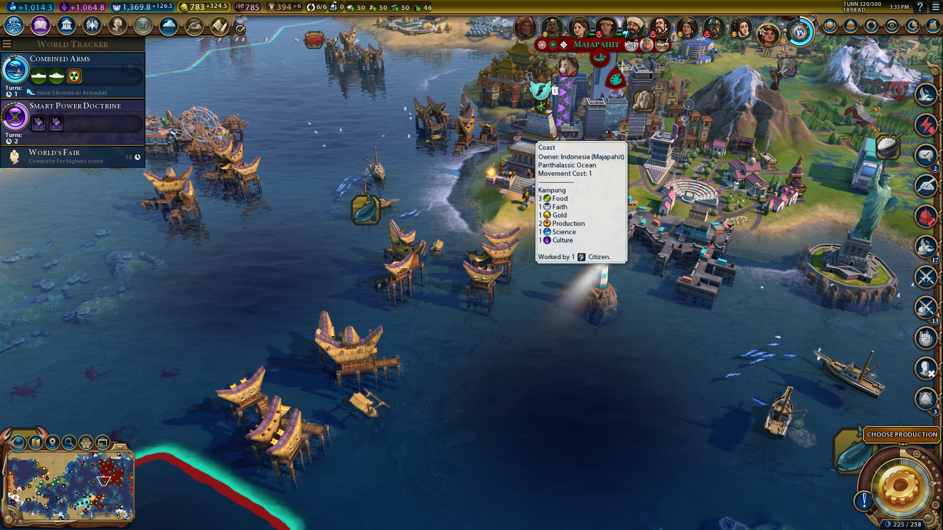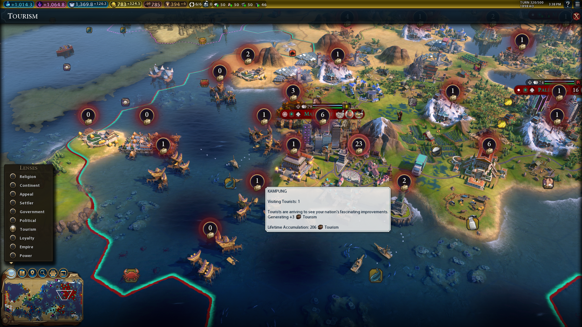 If you prefer not to play for a Religious Victory with the Gitarja Civ 6, culture can be a good alternative. That is primarily because of her Kampung infrastructure that generates tourism from its food yields. However, make sure you add Fishing Boats to all tiles beside Kampungs to fully exploit their tourism potential later in a game.
