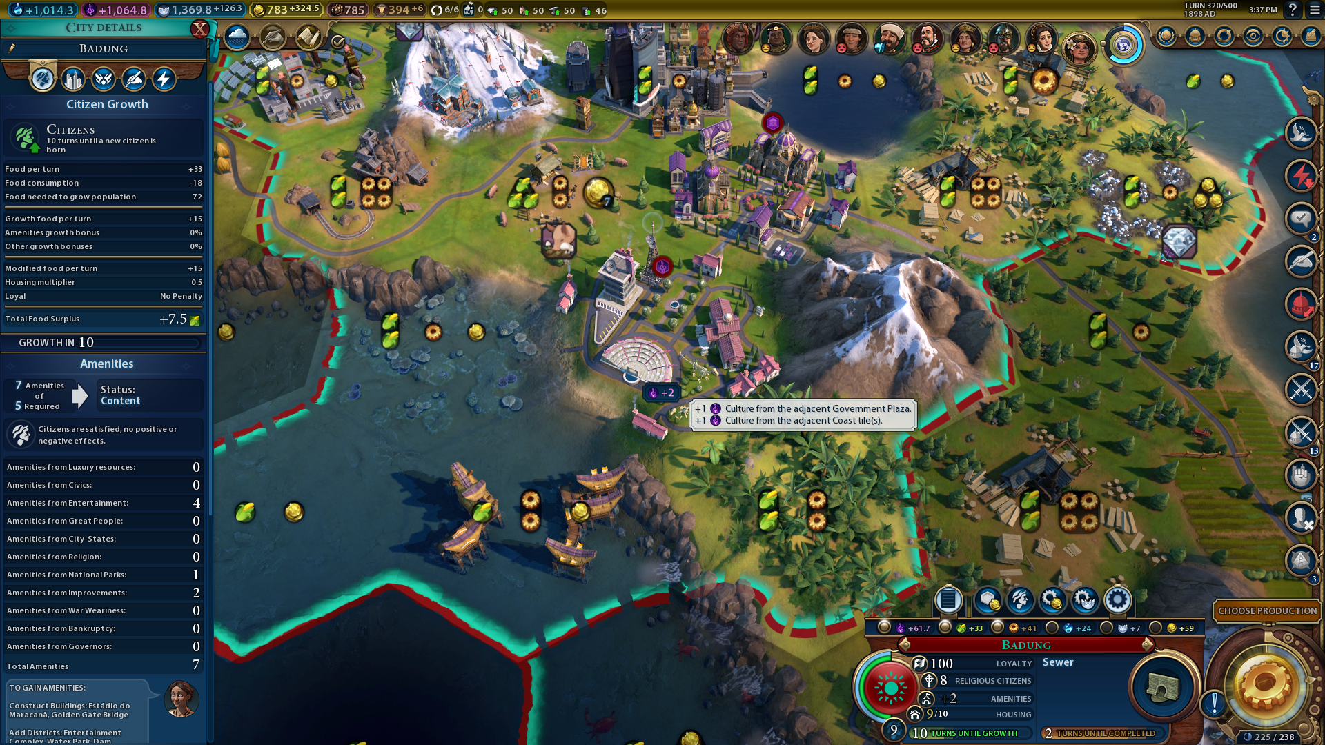 Don’t forget that the Great Nusantara civ ability also enhances Entertainment Complexes built beside a lake or coastal tiles with a +1 amenity bonus. It’s worth building Entertainment Complexes for cultural victories in Gathering Storm because their buildings generate additional tourism. The +1 amenity the Great Nusantara provides for coastal Entertainment Complexes gives you all the more reason to build them when playing as the Gitarja Civ 6 leader.