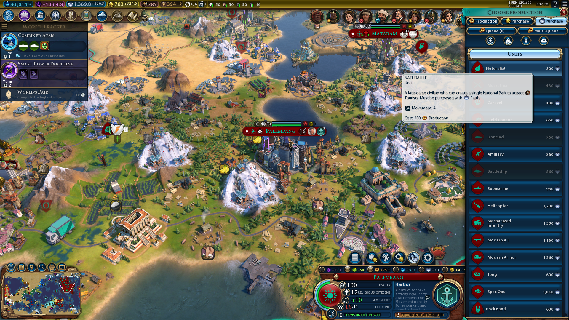 The higher faith output you can generate when playing as the Gitarja Civ 6 leader can also help secure cultural victories. For example, you can purchase Naturalists (for founding National Parks) and Rock Bands with faith to give your Indonesian civilization a boost. If you select the Jesuit Education religion belief, you can also purchase Theater Square district buildings with faith. Plus, faith is a currency for the patronage of cultural great persons.