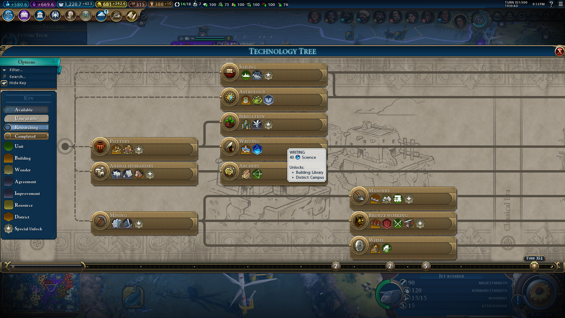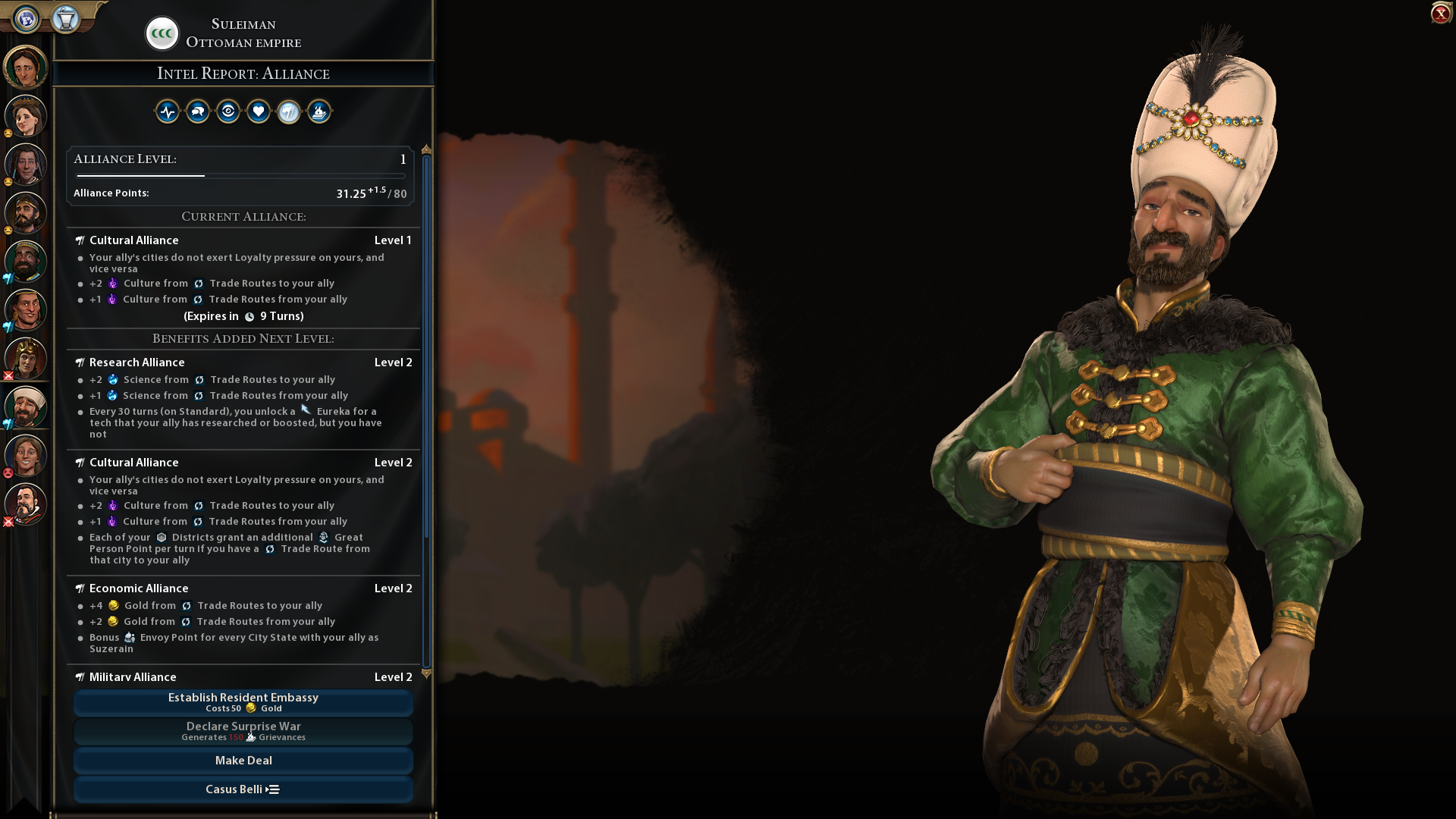 I also recommend establishing a Research Alliance with another civilization. Doing so will enable you to boost science output with trade for scientific victory purposes even more. Each international trade route you send to your ally’s city will generate +2 science yields, with another +1 science yield generated from each allied trade route sent to your cities.