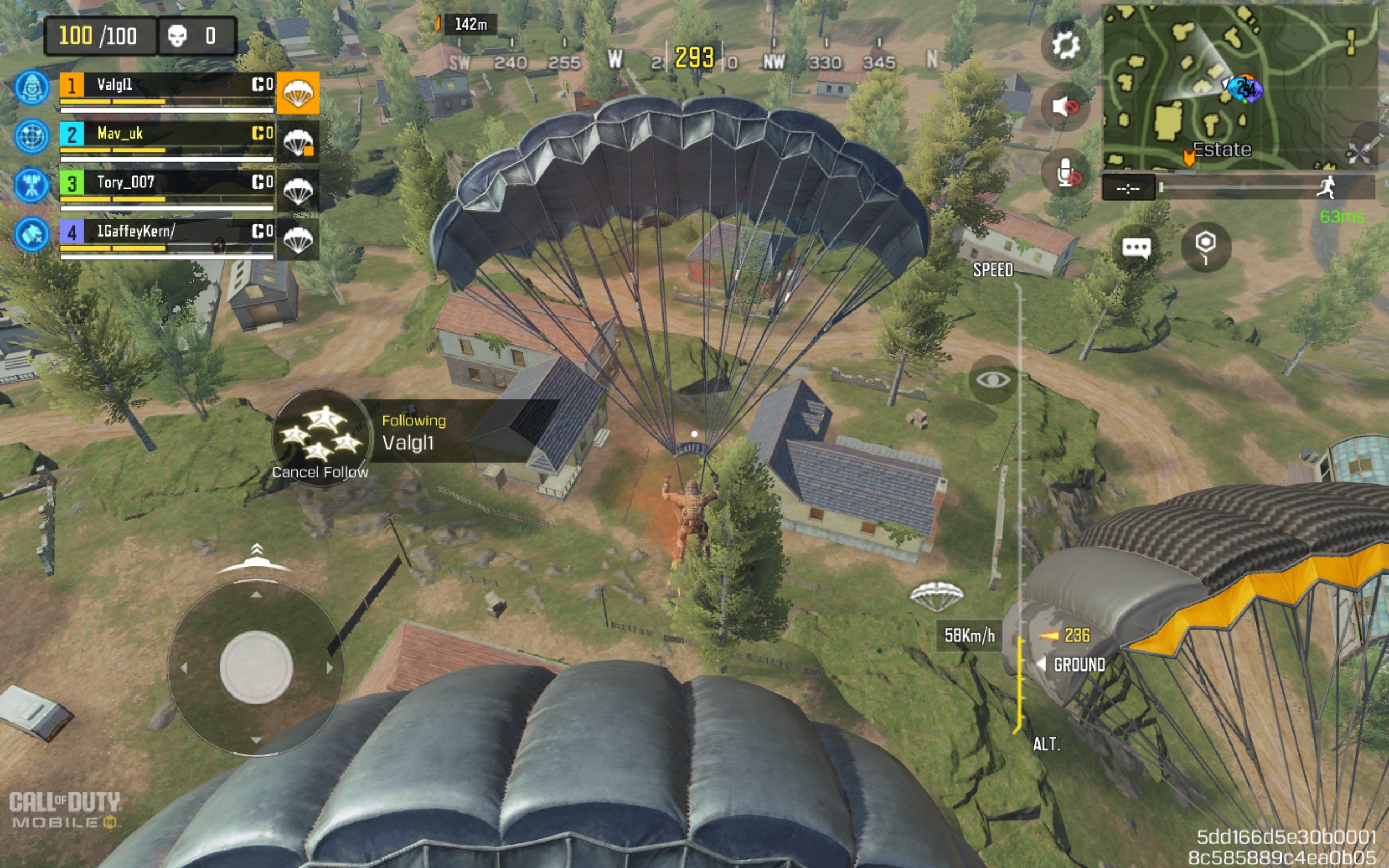 When a Call of Duty: Mobile match starts, you are set to follow a jump leader by default. There is a Cancel Following option you can select, but I don’t recommend doing so. Following the jump leader enables a team to start a match together from the outset when all players in the squad do the same. Teams that stick together more usually fare better in battle royale matches than those that split up.