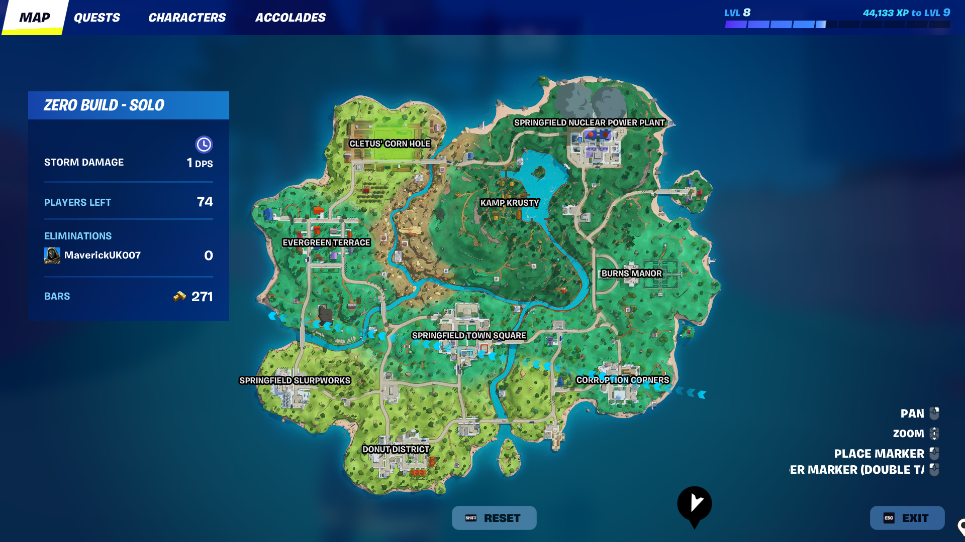 Springfield is somewhat smaller than the typical battle royale maps in Fortnite. The map is smaller to such an extent that Epic reduced the maximum player count for its matches from 100 to 80. Thus, Fortnite matches on the Springfield map are a little shorter than 100-player battle royale.