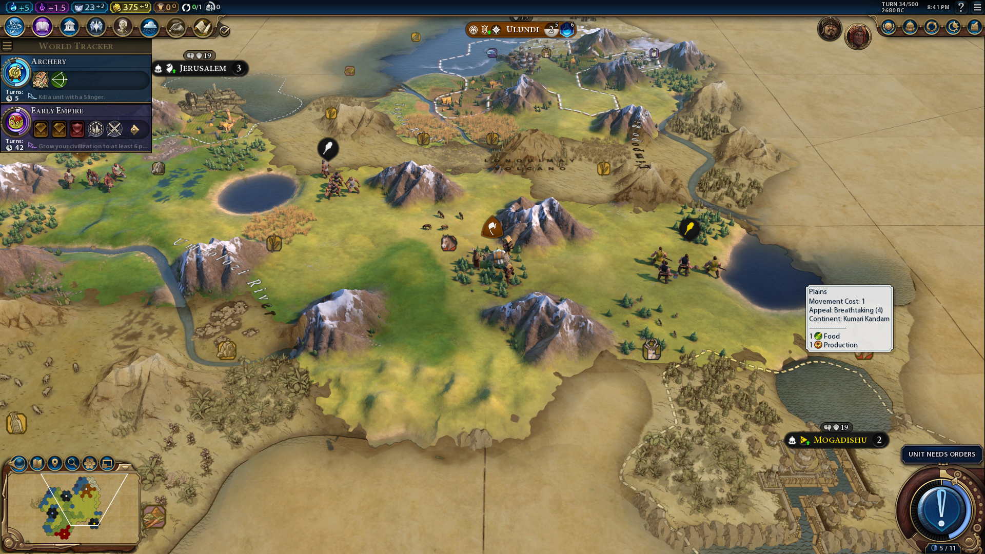 The early game period is the crucial time for expanding civilization. That is the period when most of the map is open territory for establishing cities. So, you must focus on rolling out more Settlers during the early game than at any other time.