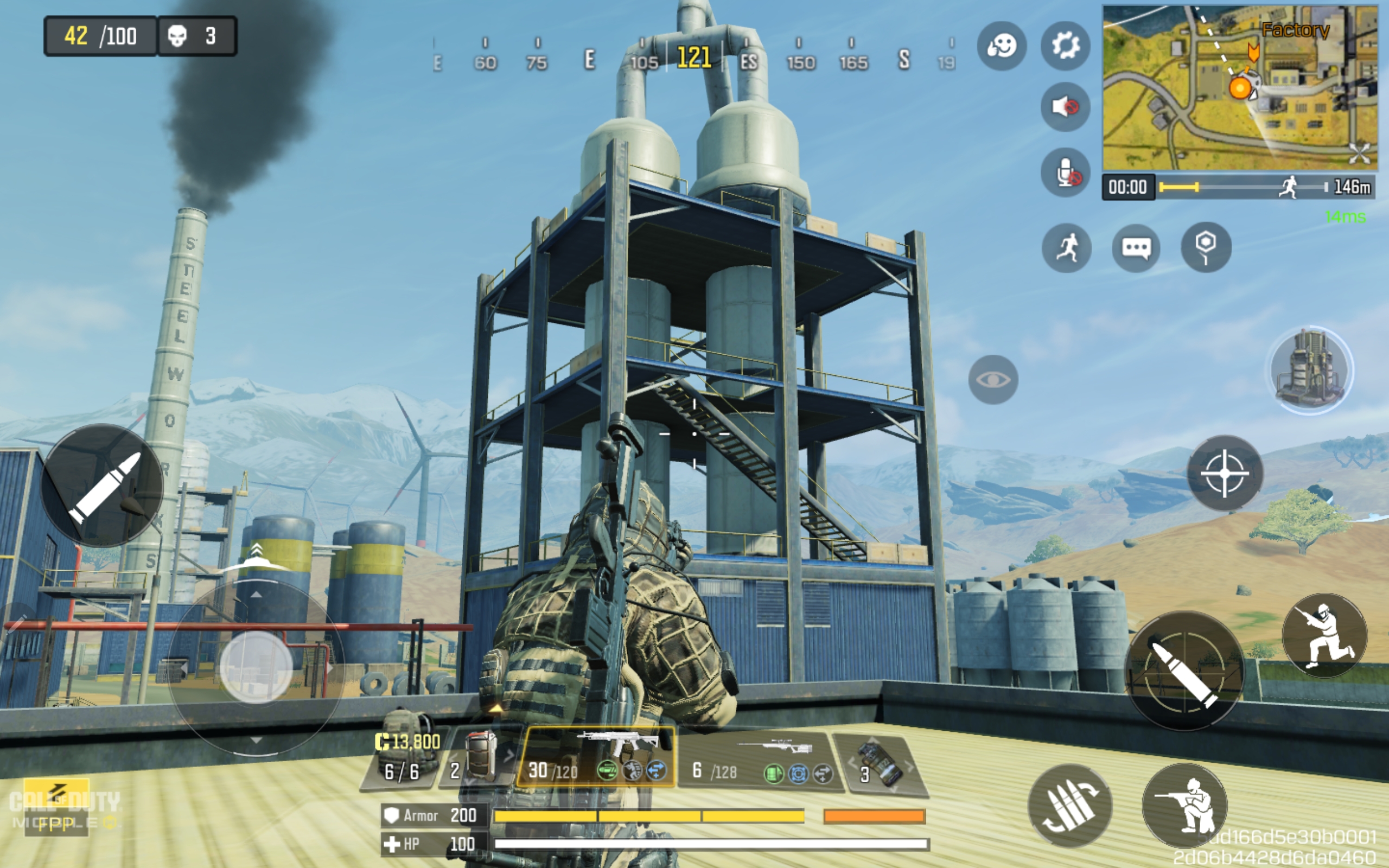 The Factory location along the south side of the river includes some tall buildings and a tower structure with three levels. The tower structure on the southern side of the Factory area (shown in the screenshot below) is a good Call of Duty: Sniping spot from which to inflict damage. Although not the highest sniping spot, it still provides a decent view of the surrounding desert terrain south of the Factory area. It also offers an ideal view of the nearest river breach players will cross over to reach Factory.