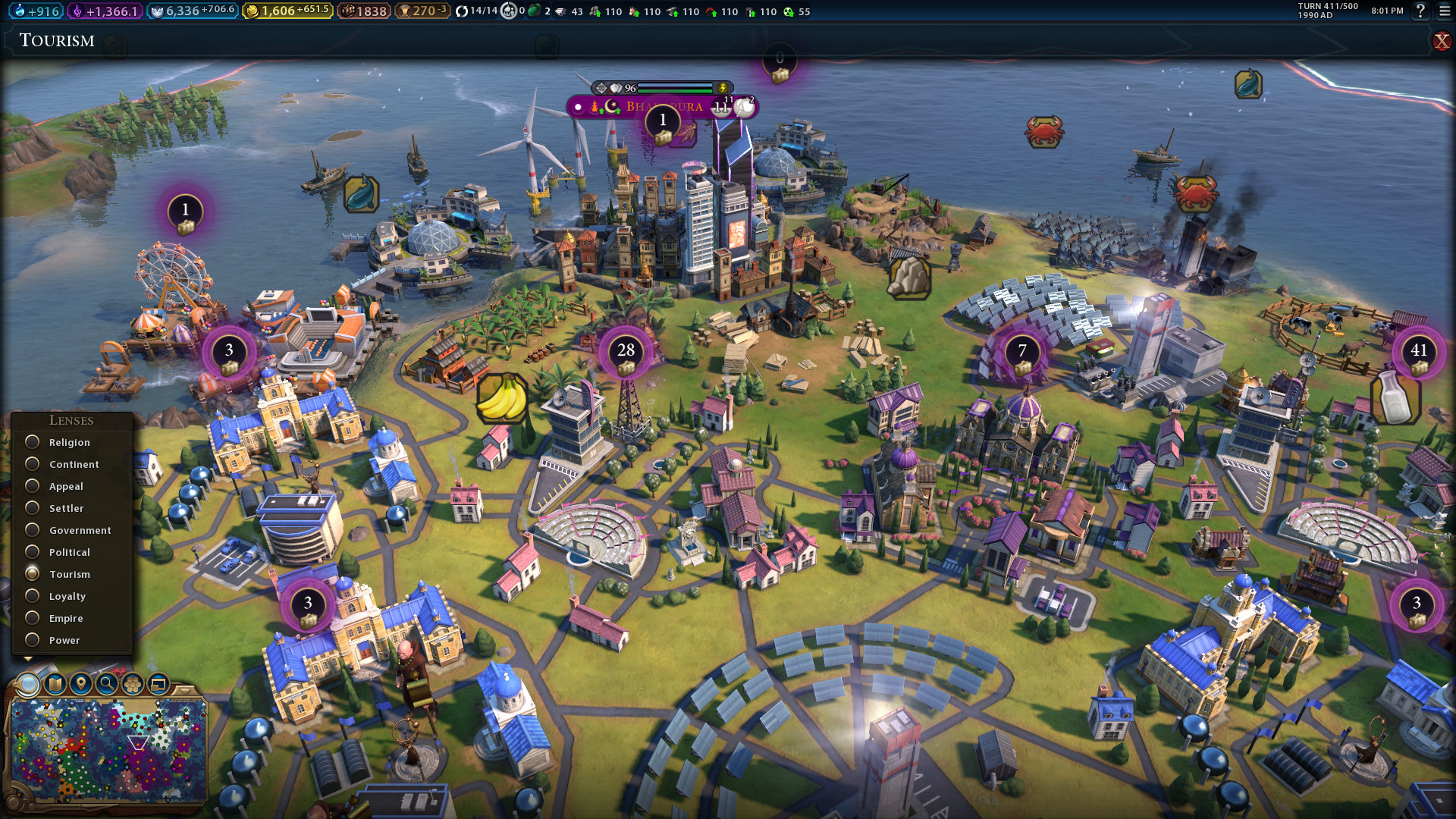 Seaside Resorts tile improvements are the best coastal attractions for generating Civ 6 tourism. You can add them to coastal tiles with breathtaking appeal. Like National Parks, Seaside Resorts generate tourism equivalent to their tile appeal. Seaside Resorts don’t generate as much tourism as National Parks because they’re restricted to single tiles. However, the potential +4 to +8 tourism they can potentially generate is still better than most single-tile improvements in Civilization 6.