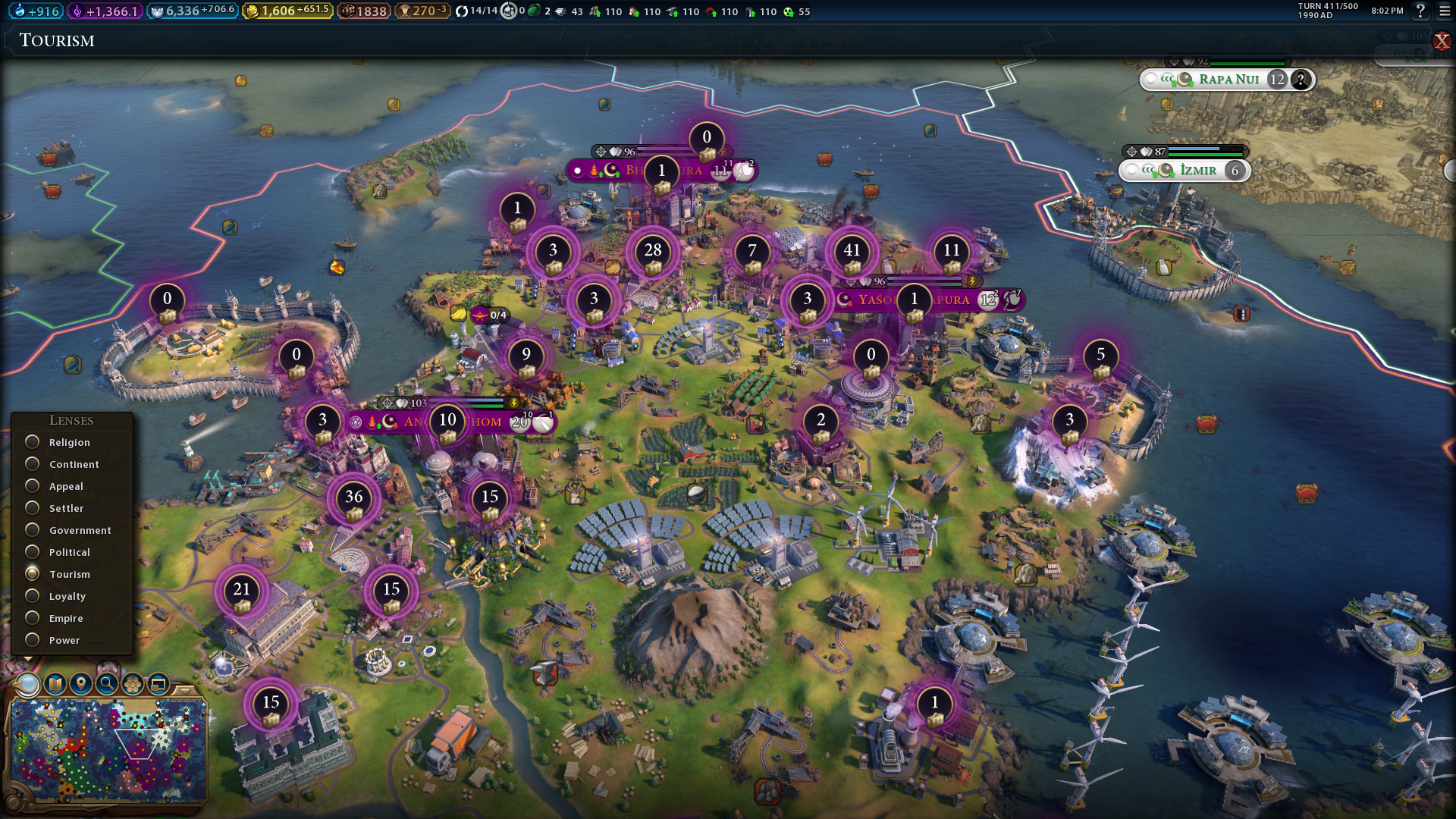 Your civilization’s holiday industry will boom with the best Civ 6 tourism attractions above. Archeology and art museums in the Theater Squares are the bread-and-butter attractions for securing cultural victories. However, establish as many Seaside Resorts, National Parks, Ski Resorts, relics, and culturally oriented wonders as you can to propel your civilization to a cultural victory. If you can also play as Sweden or Khmer, do so, because their Presat building and Open-Air Museums attractions are also among the best unique infrastructure in the game for increasing tourism.