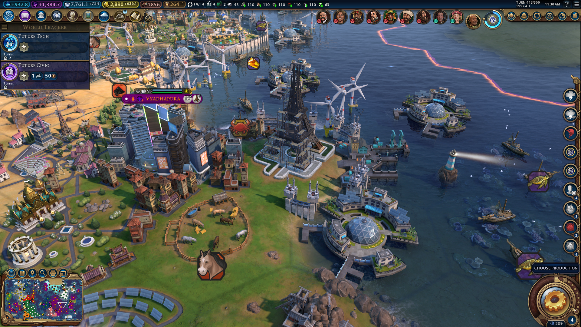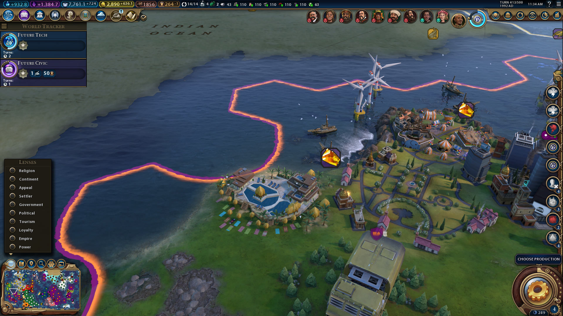 All wonders generate a +1 Civ 6 appeal rating for tiles that surround them. However, the Eiffel Tower has an effect that increases the appeal value of all the tiles in your civilization by +2. So, the Eiffel Tower is a must-have wonder for all players aiming for cultural victories because it increases the tourism value of National Parks, Seaside Resorts, and Ski Resorts within your civilization when built.
