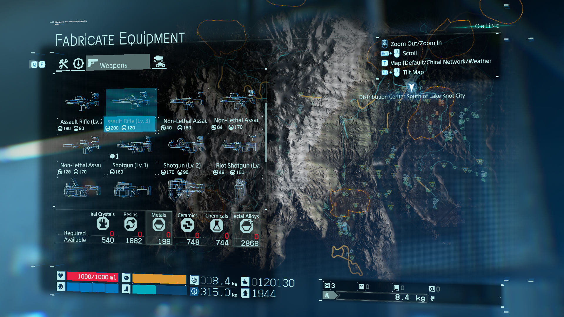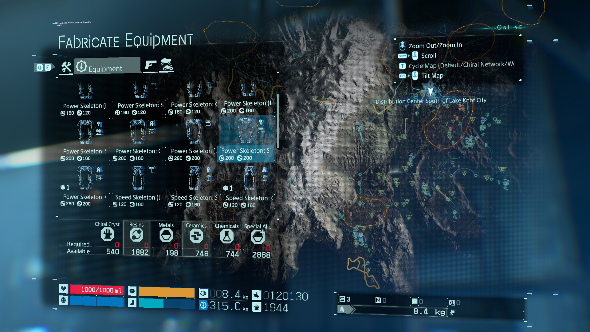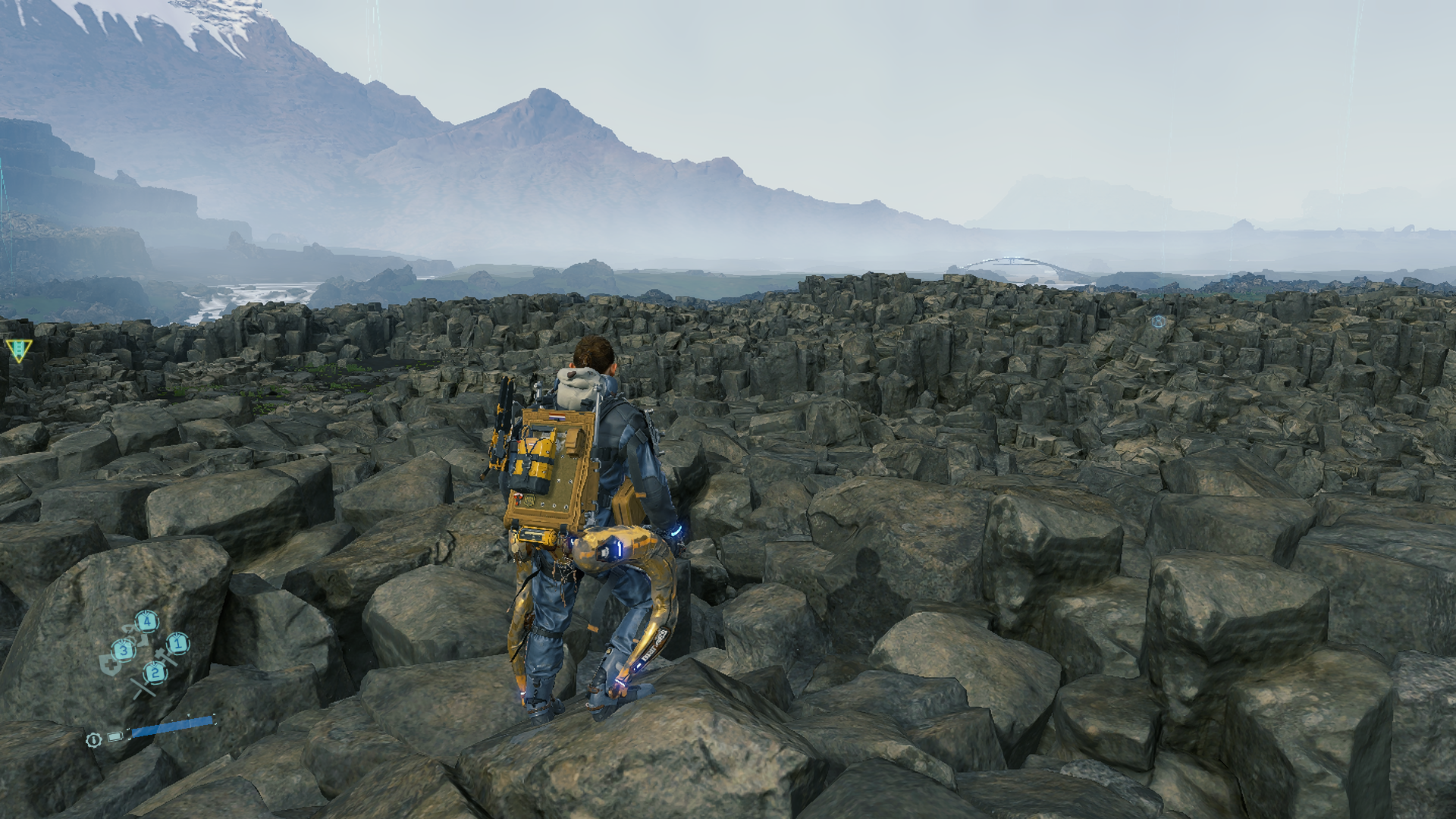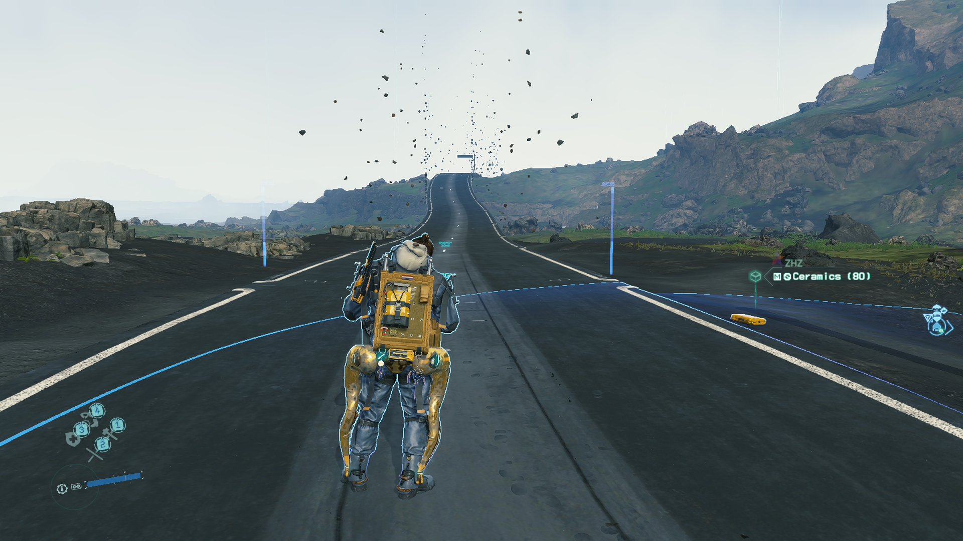 Sam is equipped with an Odradek with which you can scan terrain. This is the best tool Sam has because it really helps for spotting lost cargo with pings. Make sure you scan the terrain with regularity to spot lost cargo and building materials (metal, resins, ceramics, chemicals, and Chiral Crystals) to pick up. The additional building materials you can find by scanning are important for equipment fabrication and structure construction.