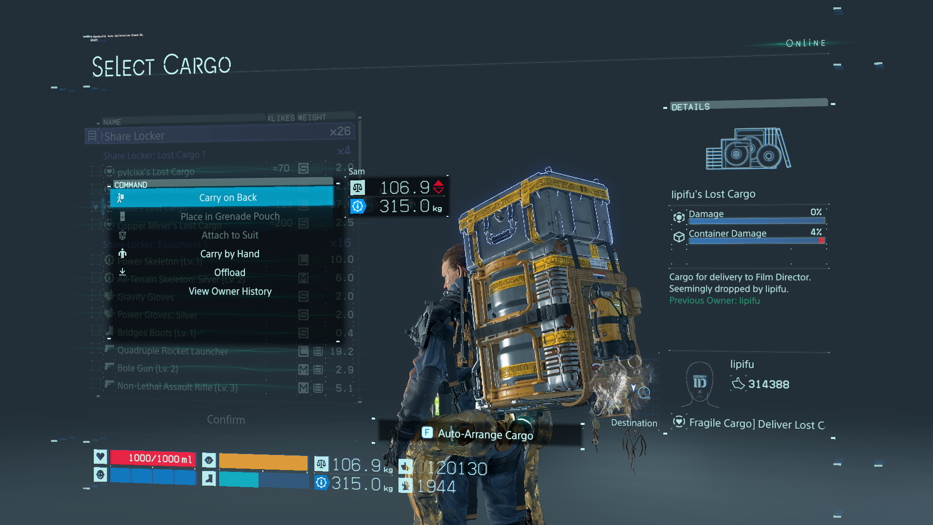 Have a good look at the map to plan your delivery routes before setting out. To do so, set A, B, and C waypoints to reach longer delivery paths. Remember that the shortest route isn’t necessarily always the best, particularly if it means walking through Mule camps and Timefall zones. Mule camps can cover large areas, but it’s always better to walk around them to avert scraps that will likely damage your cargo. When you unlock the Timefall Forecaster, utilize that map tool to assist you with averting BTs.