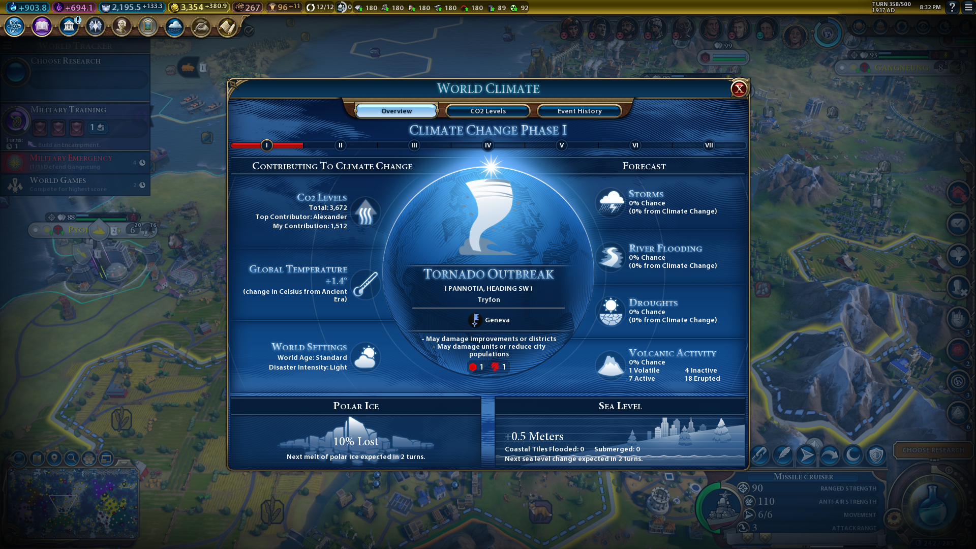 To avoid getting into a flooding mess in Gathering Storm, check when sea levels will rise on the World Climate screen. Then, build Flood Barriers in cities that will be more heavily affected by the rising sea. Doing that will minimise the damage inflicted on your cities by coastal flooding.