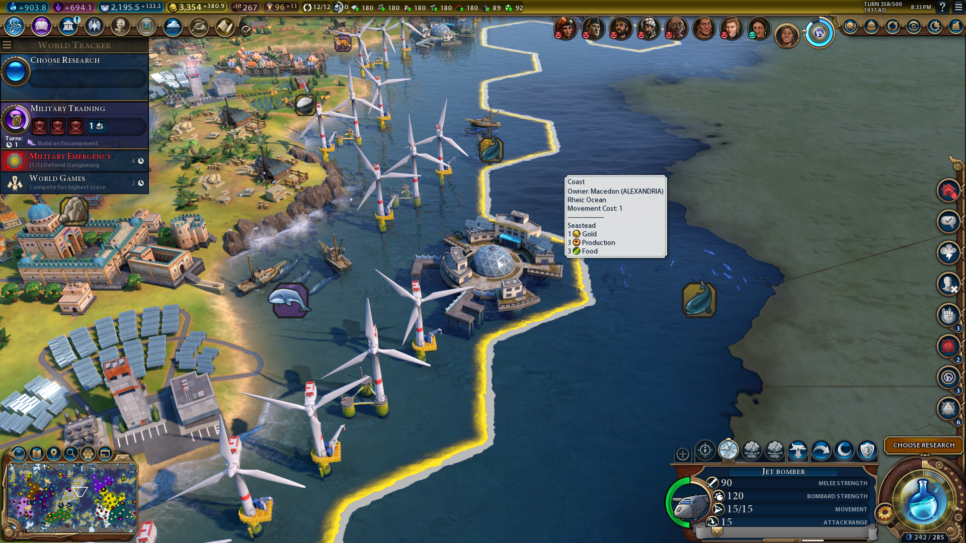 Seasteads and Offshore Wind Farms are great tile improvements for boosting city production during the late game in Sid Meier’s Civilization 6 Gathering Storm. Research the Predictive System and Seastead technologies to unlock those tile improvements. Then, you can add many Seasteads and Offshore Wind Farms to coast tiles to considerably increase production in coastal cities. This is an especially good way to increase space race project production for coastal cities with Spaceports.