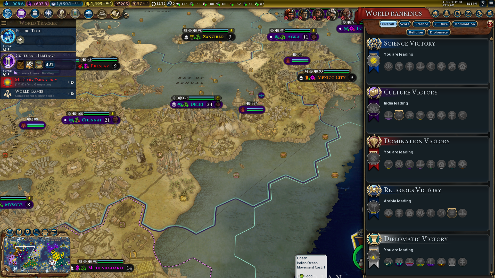 If it looks like another civilization might secure an alternative victory condition first, then you’ll need to take action. The best way to take action is usually to go to war against another civilization that looks like it might beat you. However, you’ll also need to win that war by capturing many enemy cities, so build up and upgrade your military first if necessary.