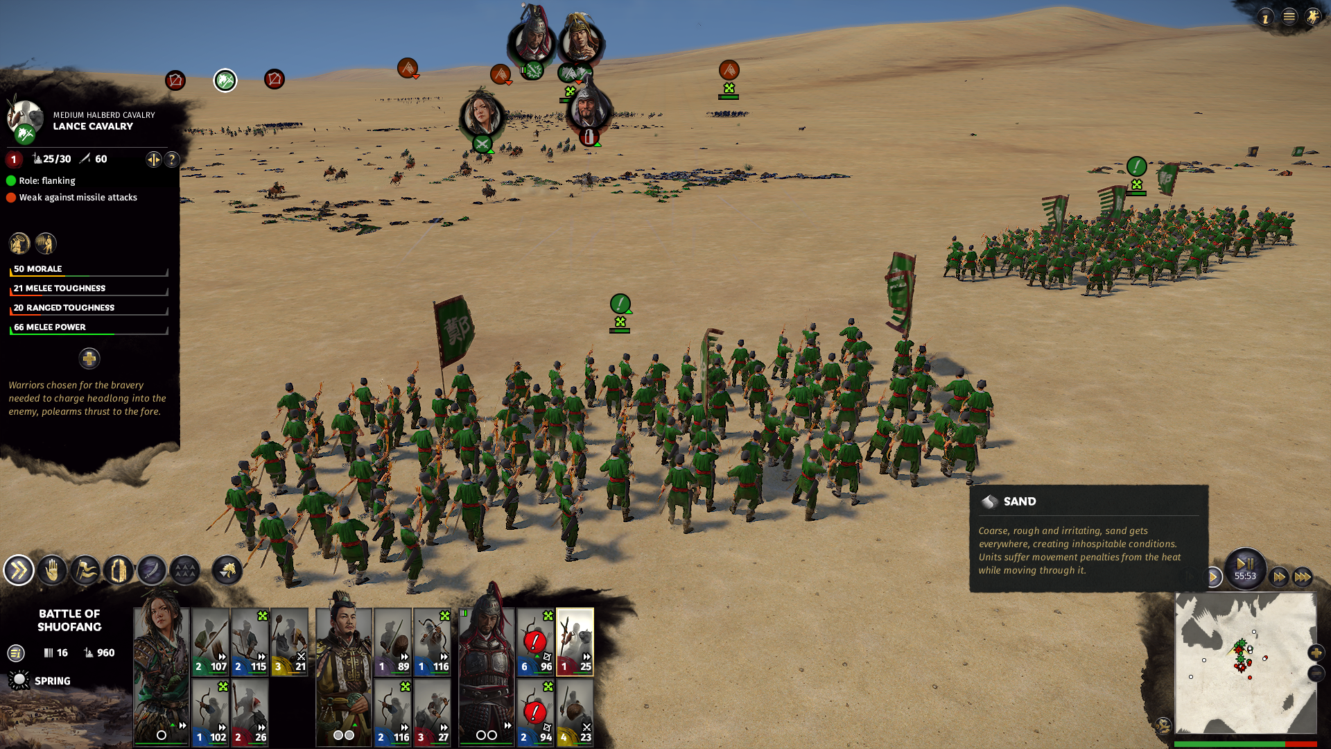 Commanders are generals who provide the best morale boosts for armies in Total War: Three Kingdoms battles. The best way to deploy Commanders is to place them just behind your front-line divisions in combat, where their passive morale aura boosts will have the most effect. Make sure your Commanders don’t get caught up in too much fighting, as it can keep them in battles and lower morale. Targeting enemy Commanders with Champions and Sentinels is also a good way to damage enemy morale during battles.