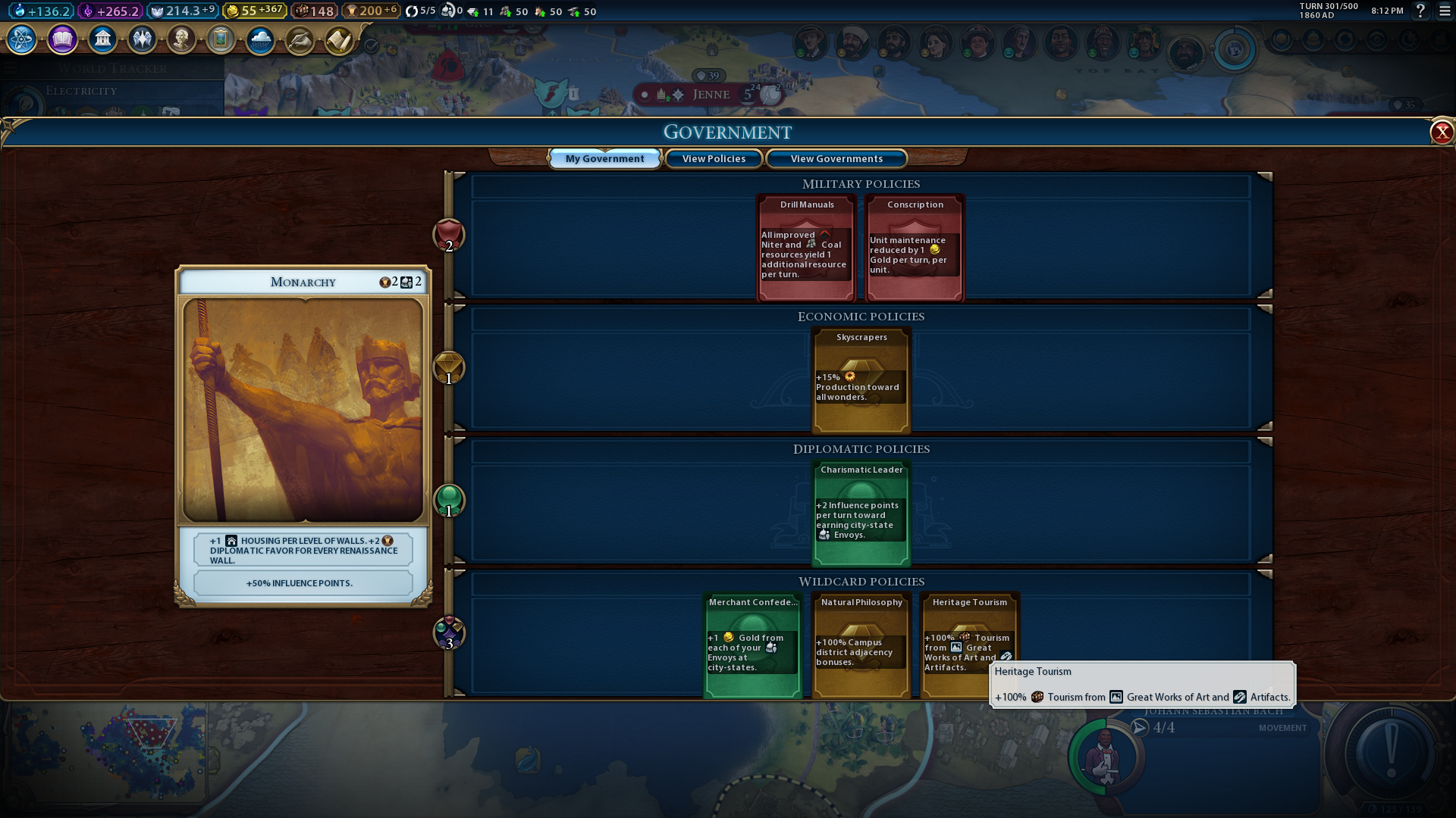 Conservation is one of the most important civics for cultural victories because of the Naturalist unit it unlocks, which enables players to establish National Parks. Aside from that, it enables your Builders to plant woods, which is a great way to increase city production and tile appeal for establishing Seaside Resorts and National Parks. Conservation enables walls to generate tourism that will further enhance your holiday industry. Plus, this civic gives you three envoys with which you can boost various yields.
